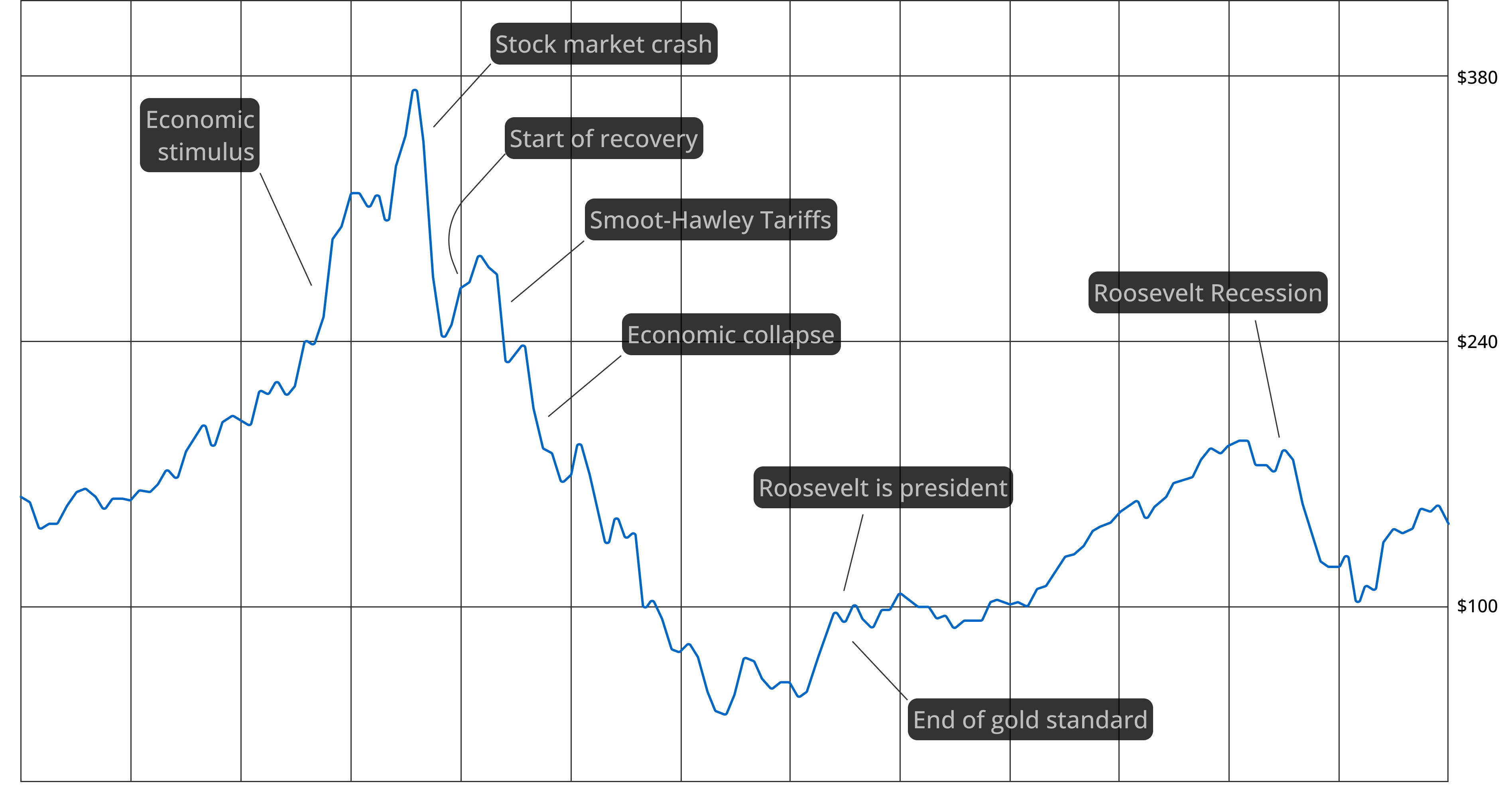 Such a break did occur in October 1929, when the American stock market crashed, marking the beginning of the Great Depression. It was one of a dozen crashes, no better or worse than all the ones before and after. The Great Depression actually had nothing to do with this stock market crash. The Great Depression is what happened next.