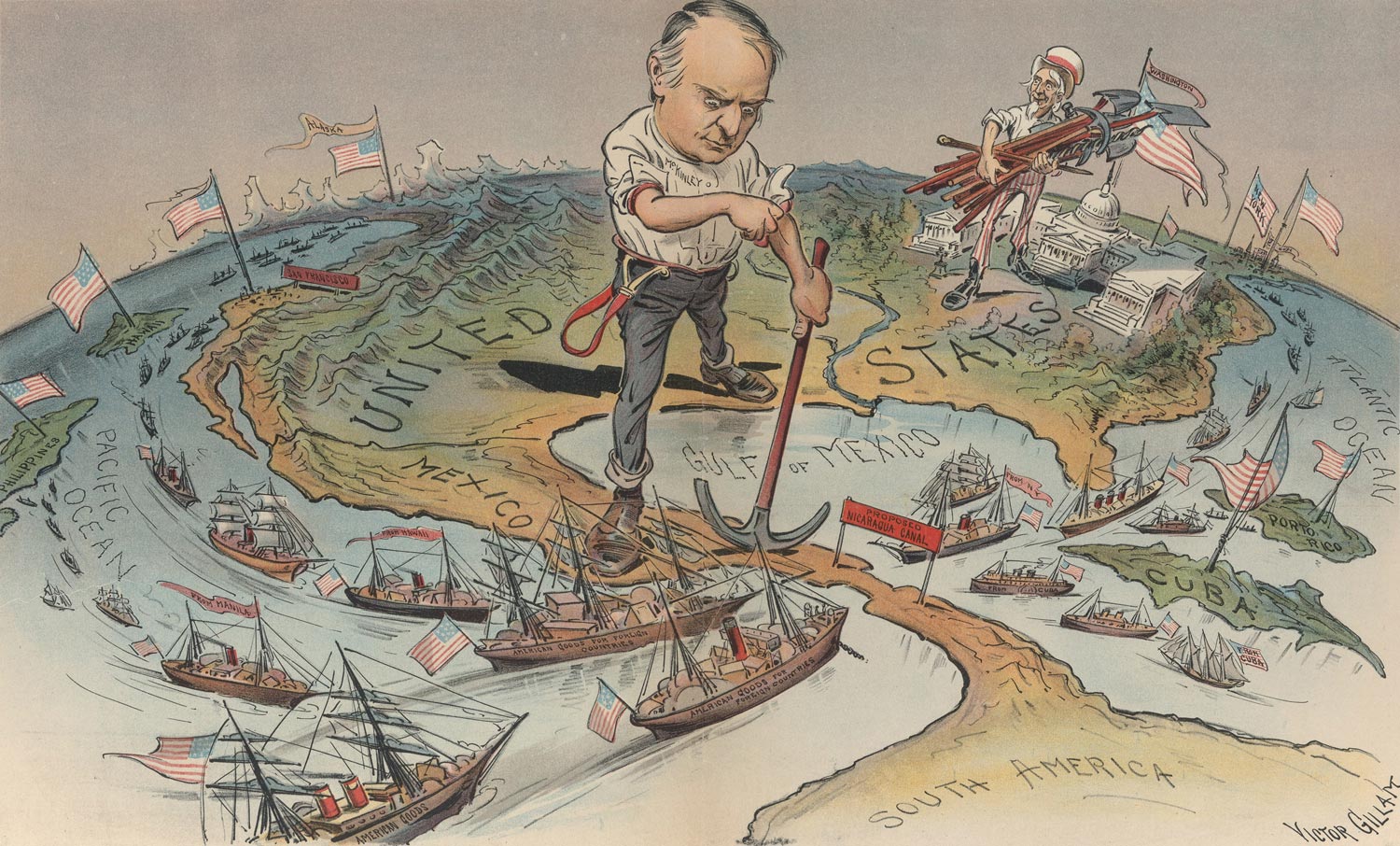 Of course, the one that got hit hardest by America's expansion was America itself — more precisely, its Central and South regions. Just look at Panama. The U.S. practically created that country out of thin air. Originally, its territory was part of Colombia. But when Colombia refused to build a shipping canal across the isthmus between the two Americas, a rebellion suddenly broke out in its northern region. Right on cue, the American fleet showed up on the coast. The next day, the U.S. announced that the northern part of Colombia was now a separate country: Panama. And then they went ahead and built the canal themselves. The Panama one.