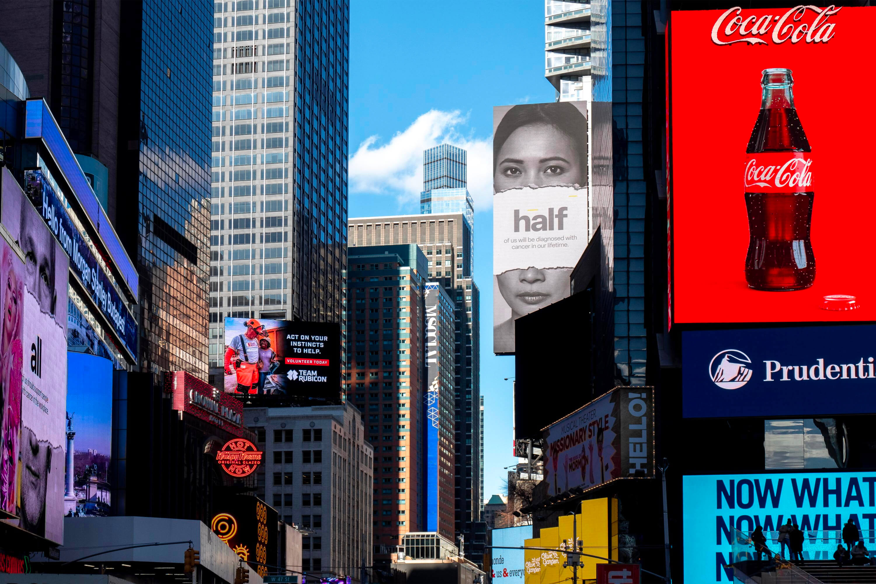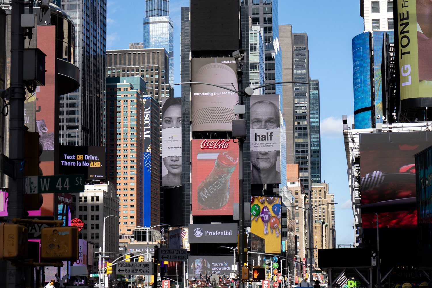 Times Square feels like a film set too. Only this time they’re shooting not a steampunk movie, but a cyberpunk one. Something about a future where cities are buried under glowing ads, and citizens are filmed nonstop... did I say “future”?