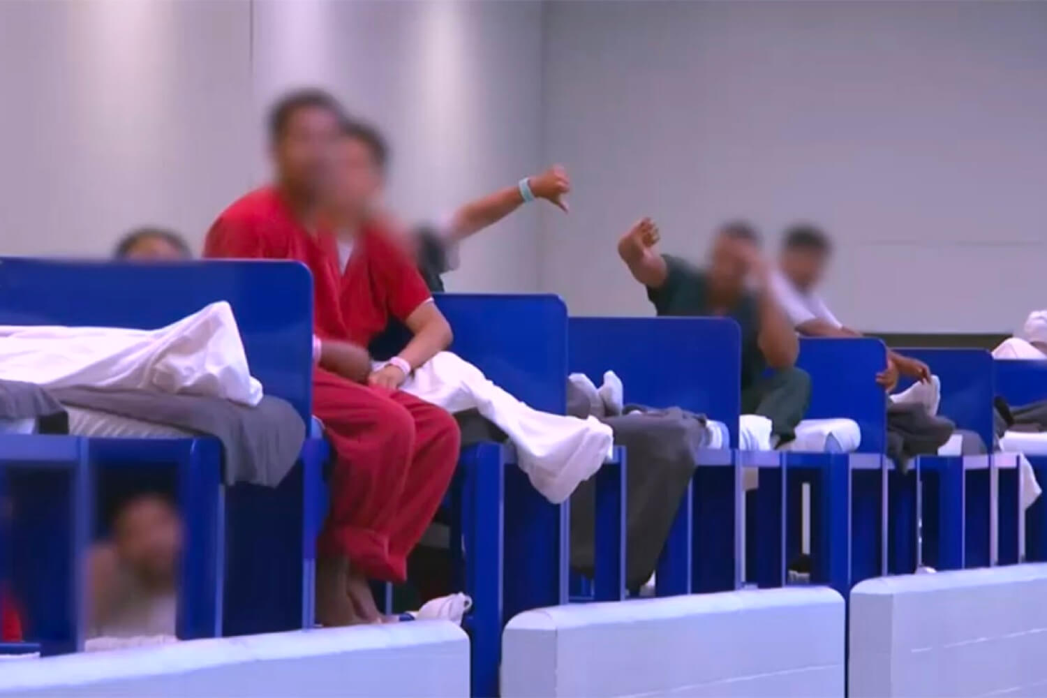 People in detention centers differ from prisoners only in that they haven’t actually committed any crimes. Their everyday life, though, is no different from regular prison life. They wear orange jumpsuits, sleep on bunk beds with thin mattresses, and wash in communal showers.