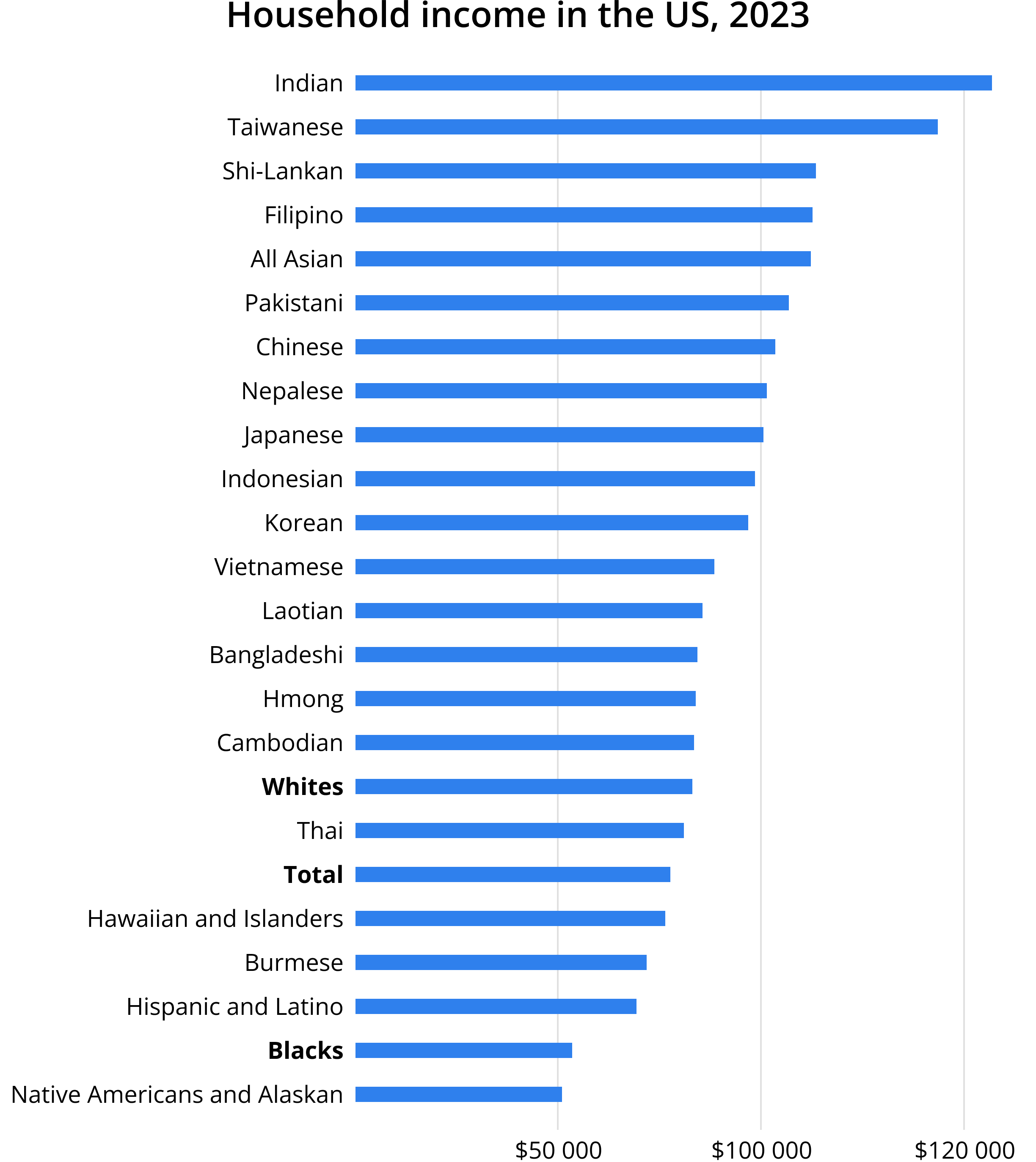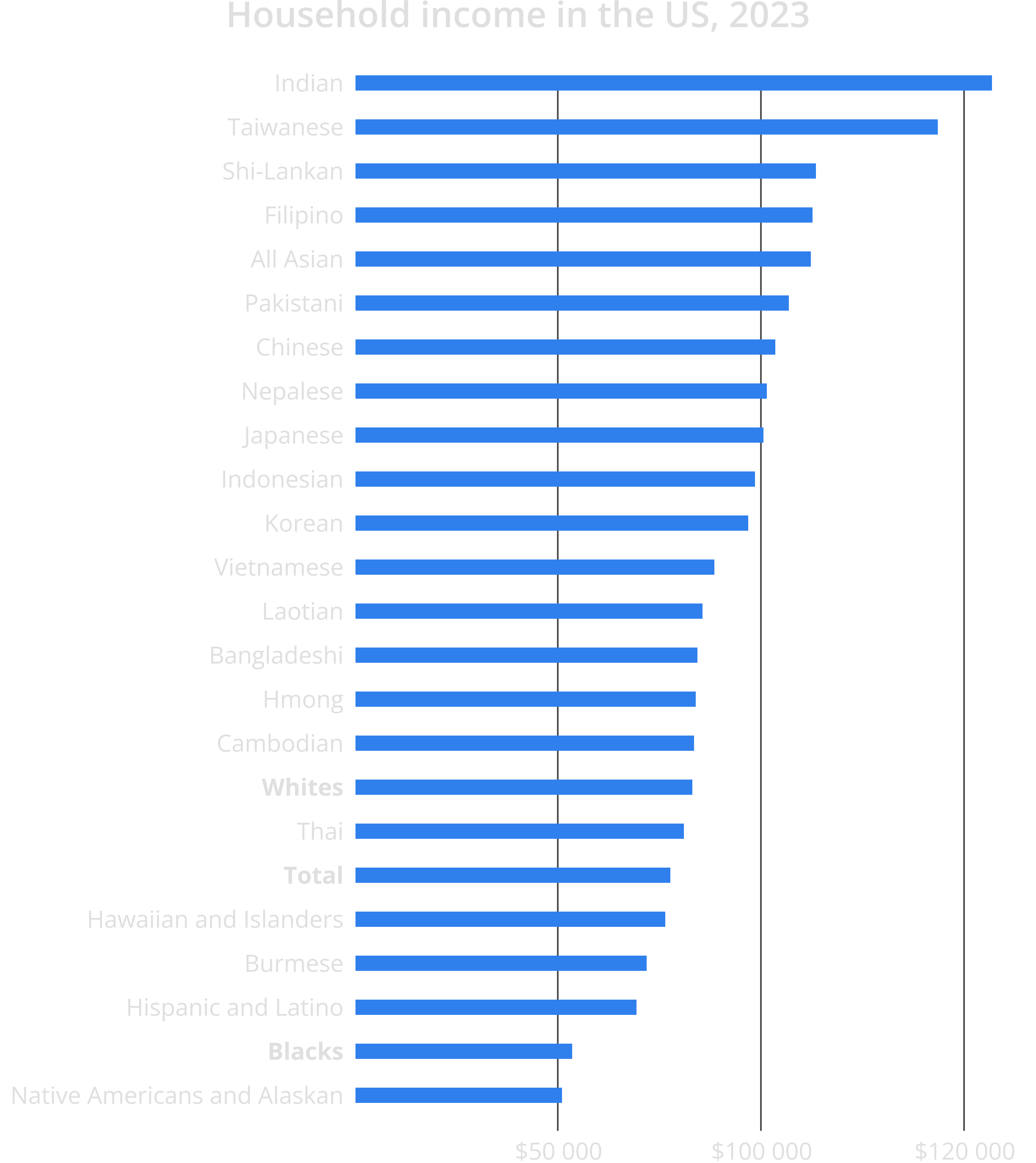 And here’s the reality. The highest salaries in the U.S. are earned by Indians. Then come Taiwanese, Sri Lankans, Filipinos, Pakistanis, Chinese, Nepalis, then another dozen varieties of Asians... and only after that do you get to white people, including white Americans themselves!