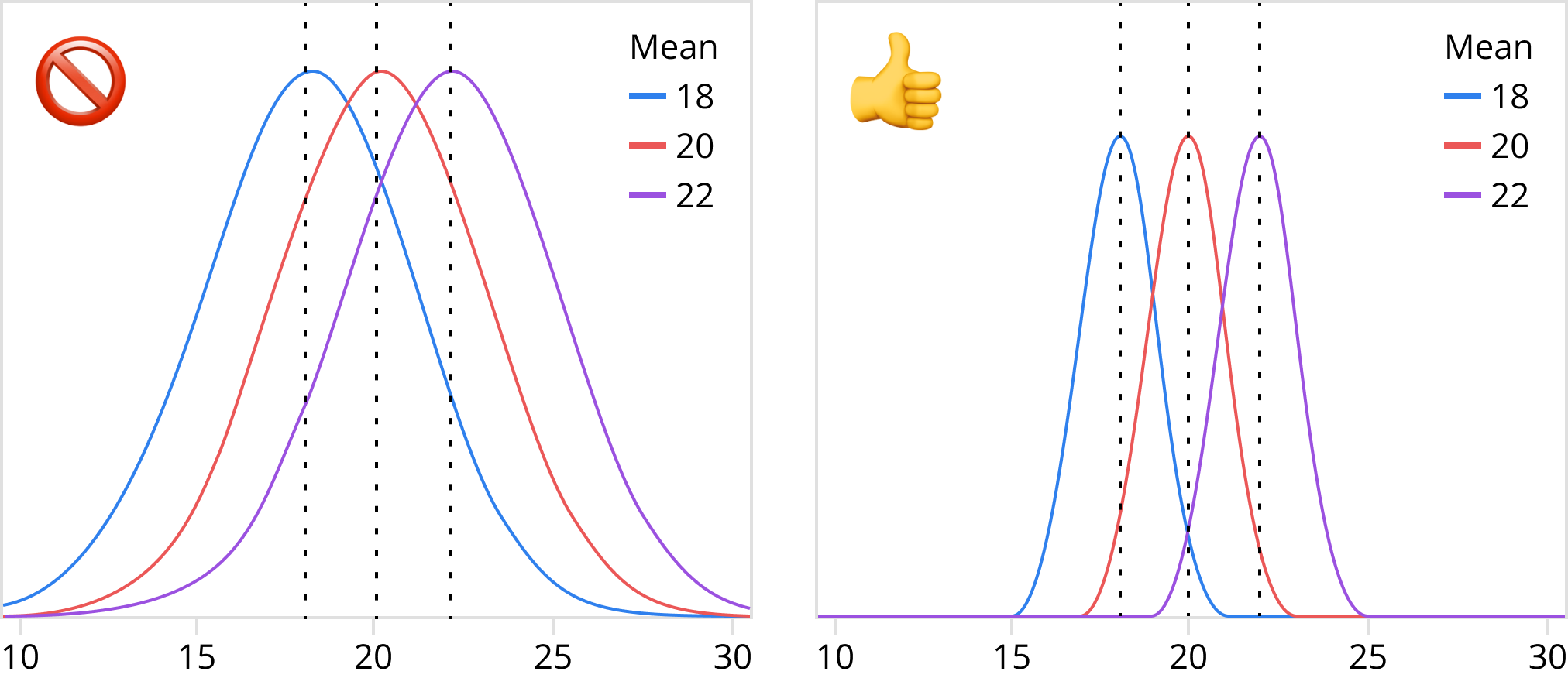 Version for humanities majors. Let’s say Gryffindor students range in height from 150 to 220 cm, and Slytherin students from 140 to 220 cm. Then the average height of a Gryffindor student will be 185 cm, and that of a Slytherin student will be 180 cm. Can we say that, on average, Gryffindors are taller than Slytherins? You can say it, sure, it’s a free country — it’s just that their height spread is so huge that it’s basically meaningless.