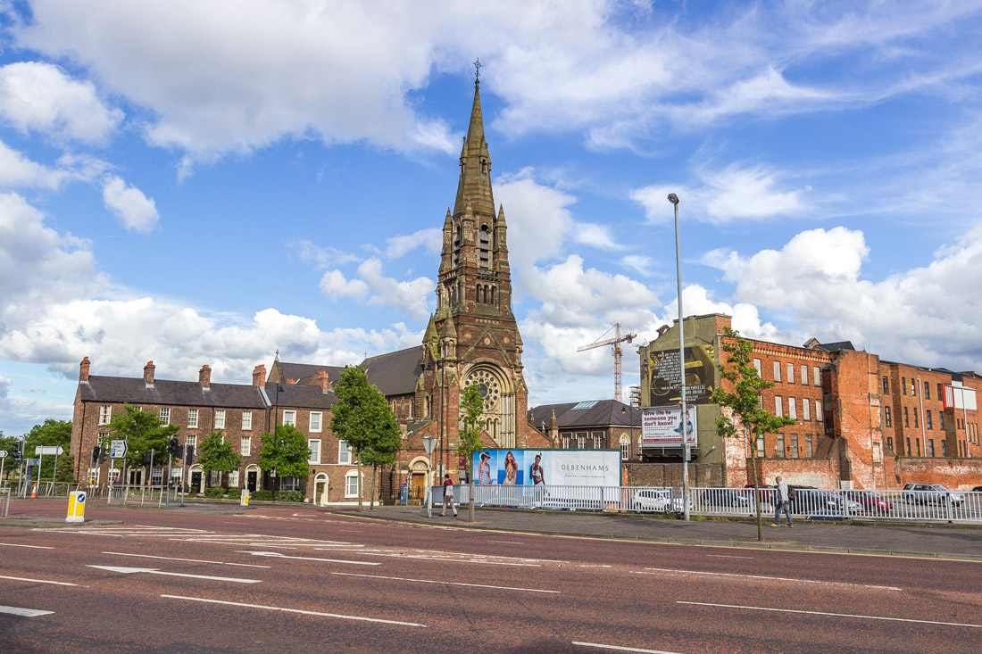 And nearby is a famous place — the Europa Hotel. This hotel holds the title of “The most bombed hotel in the world.” During ethno-political conflicts in Northern Ireland, the hotel building was targeted with bombs 26 times. The Europa Hotel frequently hosted meetings and accommodated political figures.