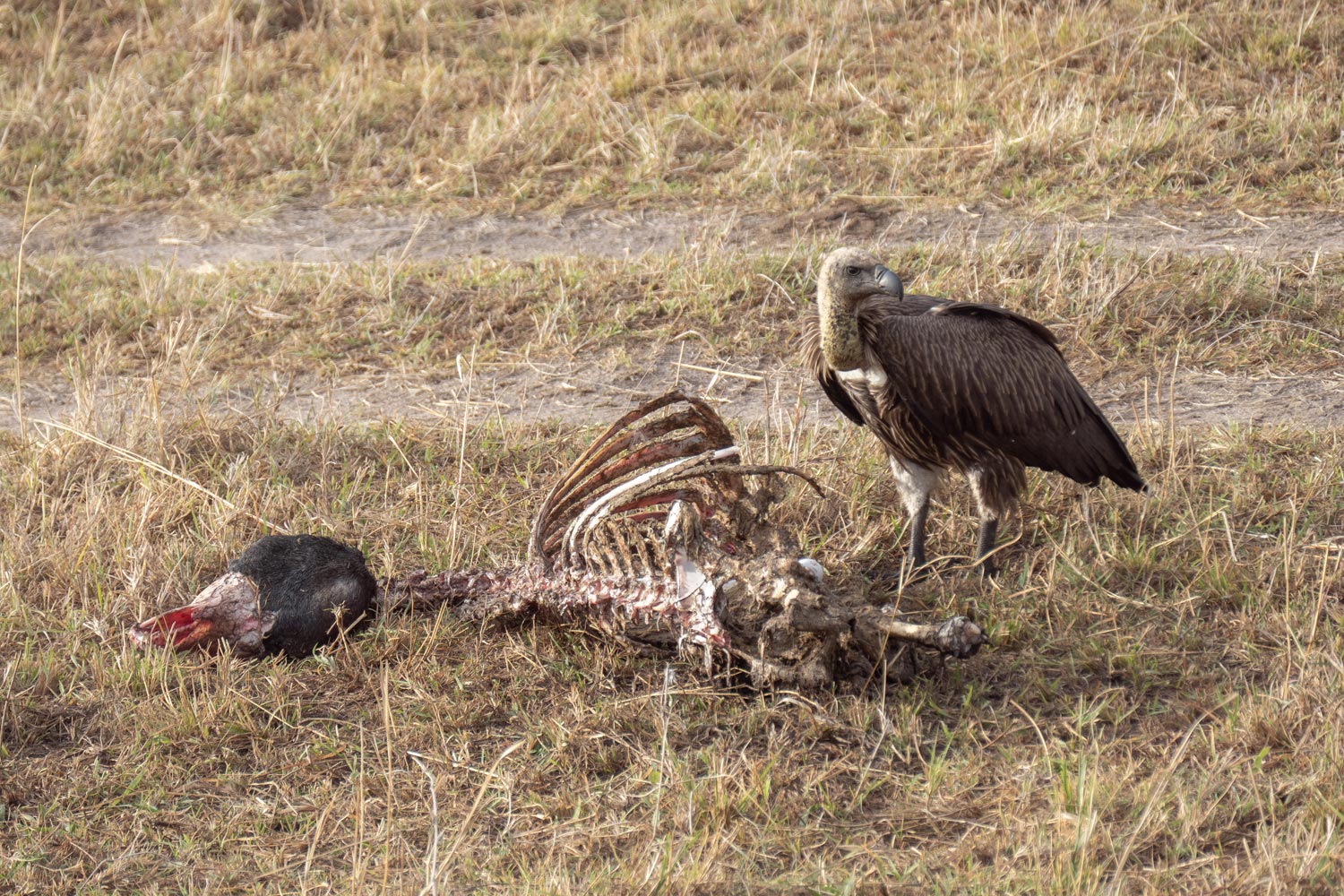 Whatever the lions and cheetahs don’t finish is left for smaller predators: hyenas and vultures. A vulture is a bird that feeds on carrion and scraps from other animals’ kills.