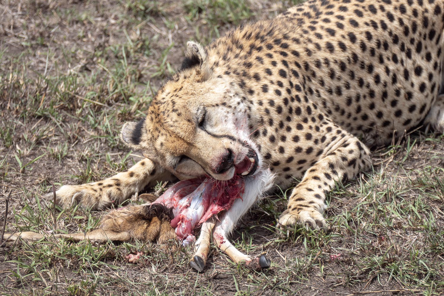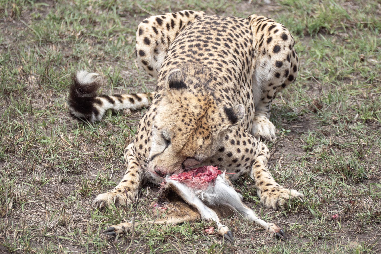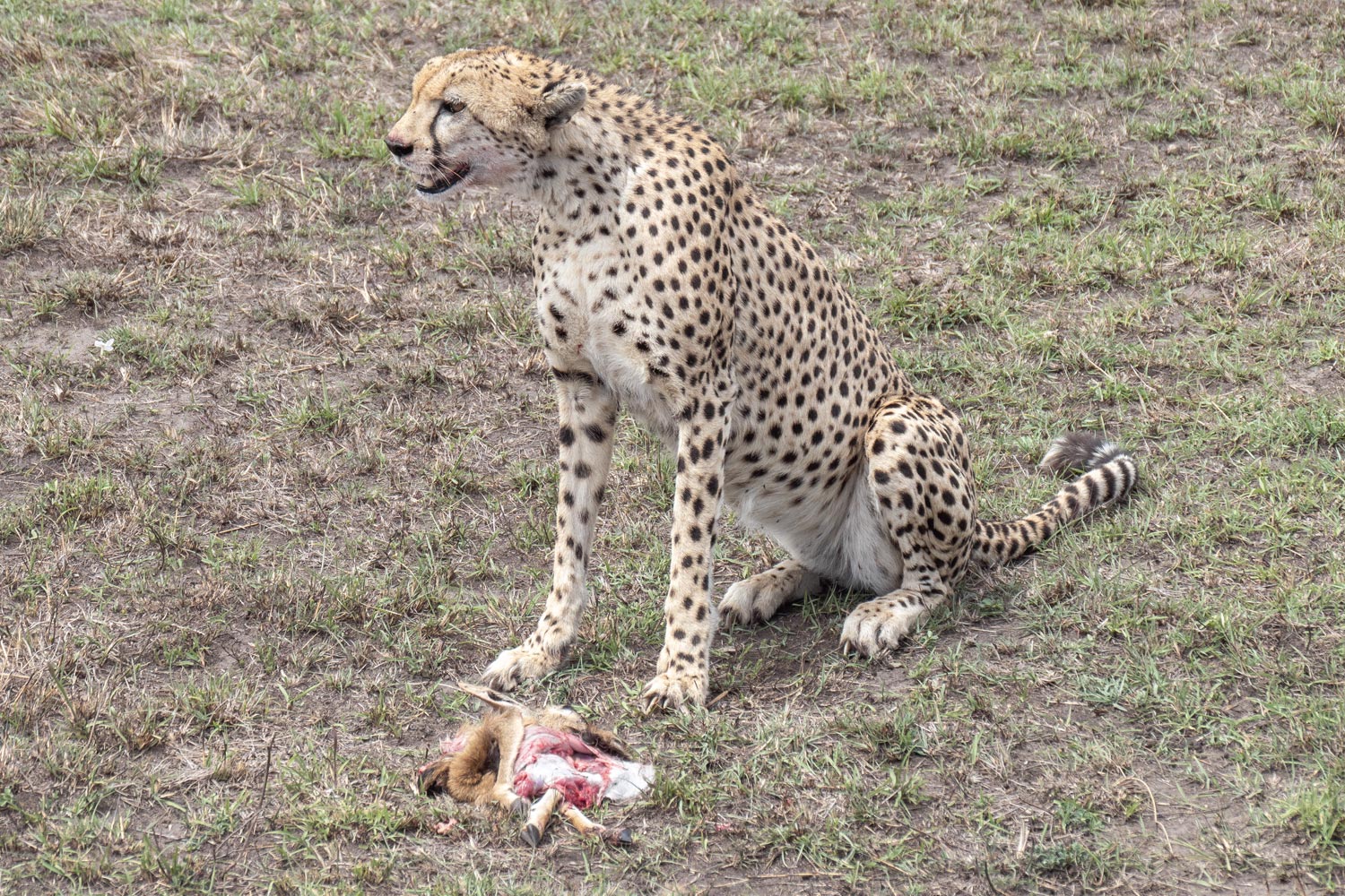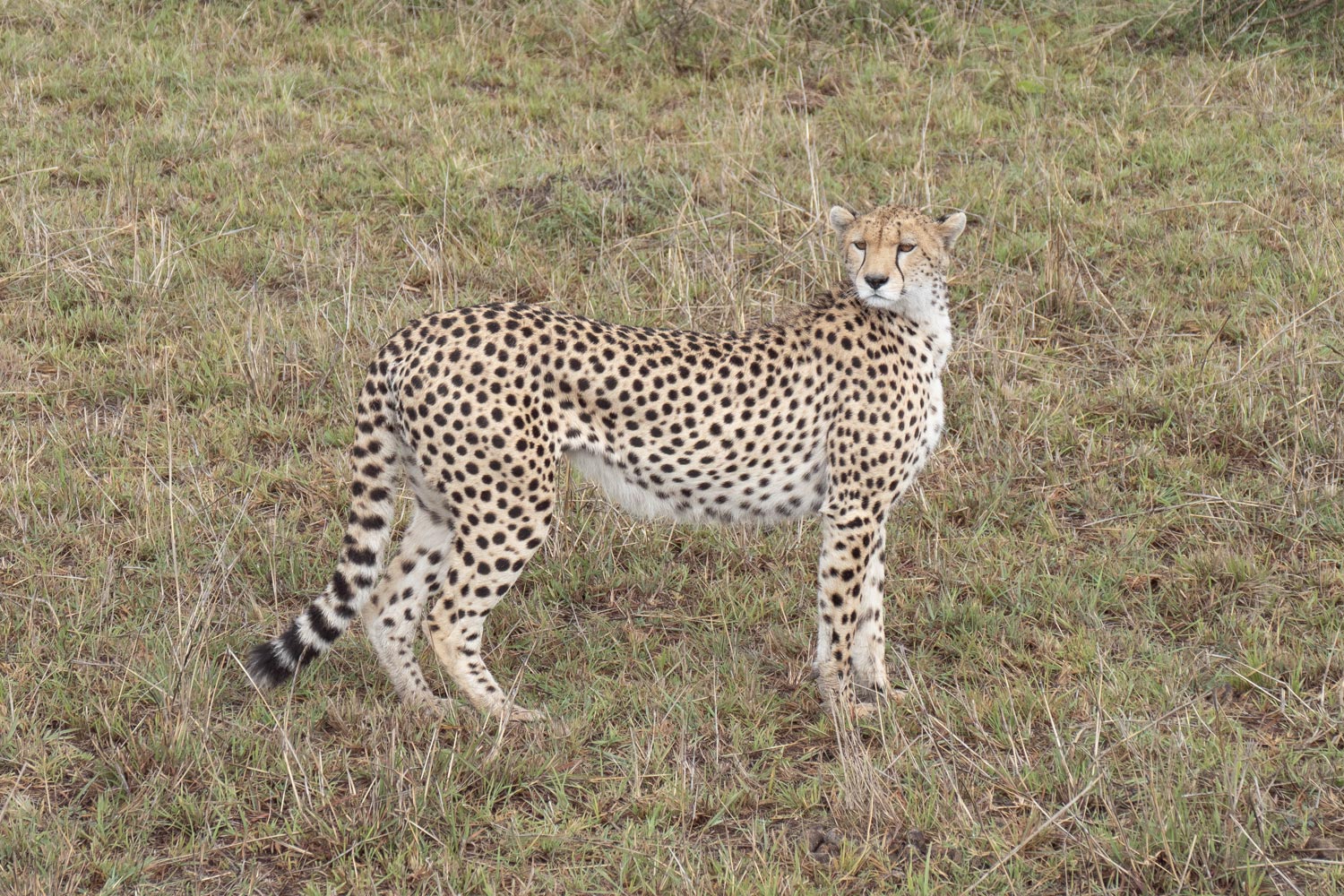 Both animals are found in the Maasai Mara park, but the animal in the photographs is a cheetah: it is slender and graceful, whereas a leopard is stockier, more like a tiger.