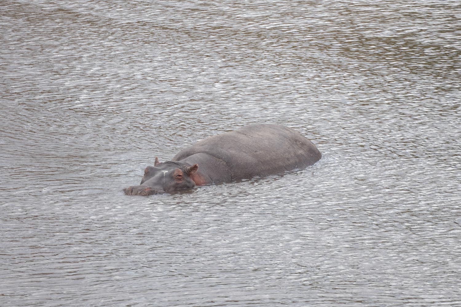 Hippos give birth in water and spend most of their lives there. When they swim, only part of their back is visible above the surface, with the rest of their body hidden underwater.