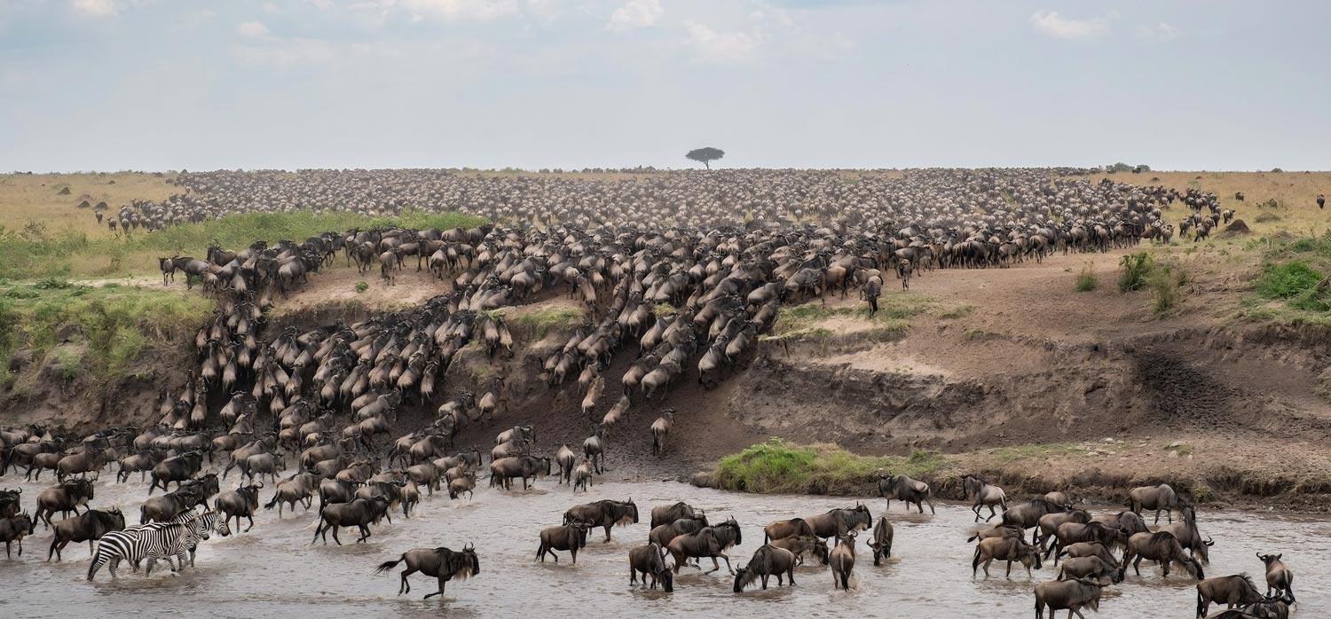 Near the border with Tanzania, there is a river surrounded by a special area of the park known as the Mara Triangle. This is a migration route for animals crossing the river, providing photographers with award-winning shots.