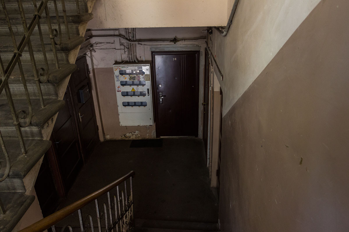 The entrance is on a huge pedestal, making it more difficult for the elderly to reach home. And a brilliant solution: a sewage manhole in the middle of the stairs! However, these issues are not specific to Latvia but rather to the Soviet era — these buildings were clearly constructed in the 1960s.