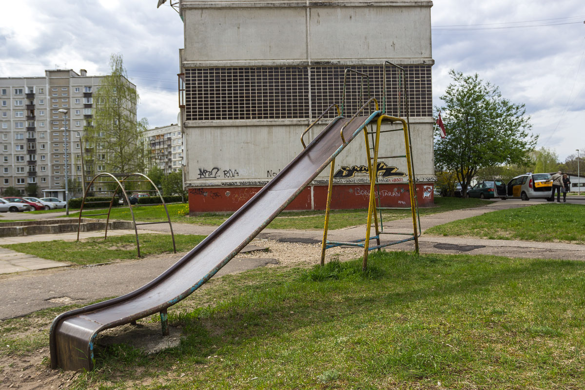 The sun came out, it became less depressing. Even a playground was found. One for several districts. Small, old.