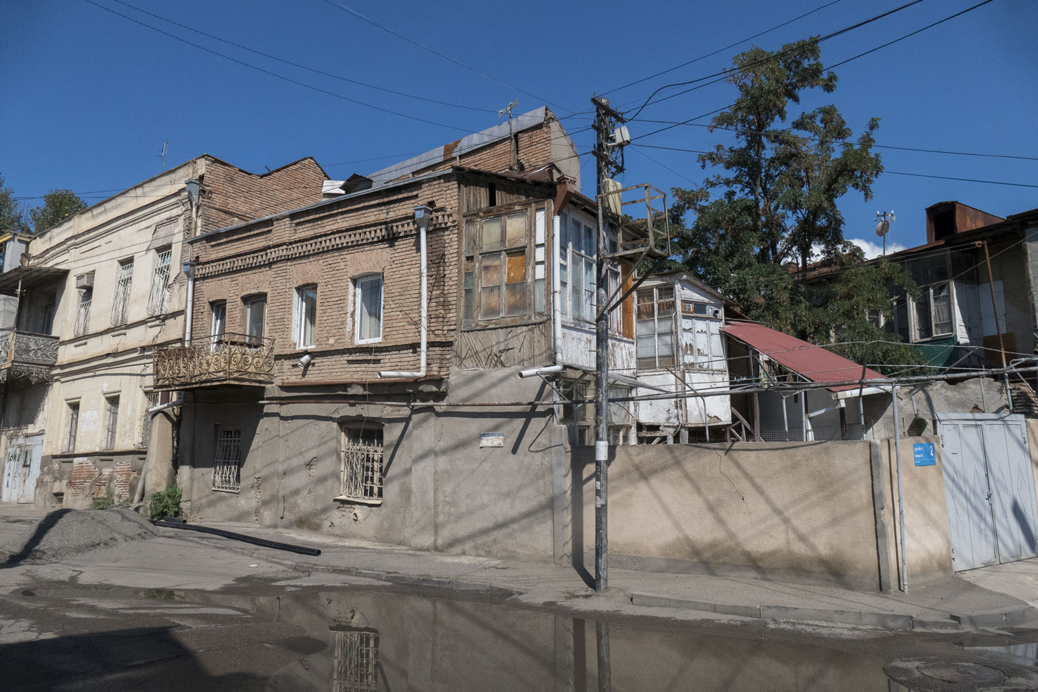 So, among these rundown neighborhoods stands the Presidential Palace. I don’t know if Saakashvili planned to do something about this situation. Perhaps he did. But it looks magnificent. I couldn’t find an angle to capture the palace and the slums in one frame. The fence on the left of the photo is the fence of the palace. On the right are houses with cracks.